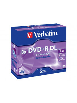 Dvd+r verbatim doble capa capacidad 8.5gb velocidad 8x 240 min pack de 5 unidades