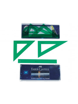 Juego escuadra y cartabon petaca faber castell metacrilato color verde