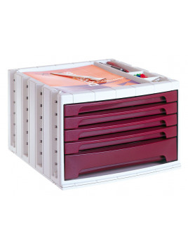 Fichero cajones de sobremesa q-connect 305x370x215 mm bandeja organizadora superior 5 cajones burdeos opaco