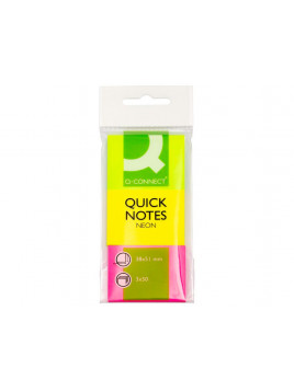 Bloc de notas adhesivas quita y pon q-connect 38x51 mm neon pack de 3 unidades con 50 hojas por color