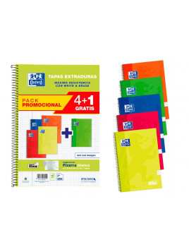 Cuaderno espiral oxford tapa extradura folio 80 hojas cuadro 4 mm con pizarra blancapack 4+1 colores clasicos