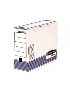 Caja archivo definitivo fellowes a4 carton reciclado 100% lomo 100 mm montaje automatico color azul.