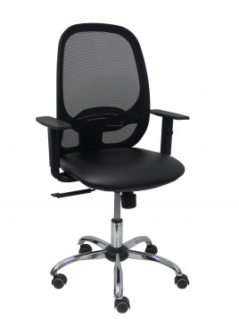 Silla Cilanco negra malla negra asiento similpiel negro brazo regulable base cromada