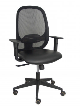 Silla Cilanco negra malla negra asiento similpiel negro brazo regulable.