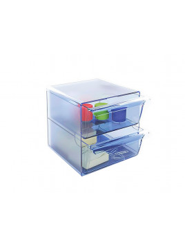 Archicubo archivo 2000 2 cajones organizador modular plastico azul transparente 190x150x150 mm
