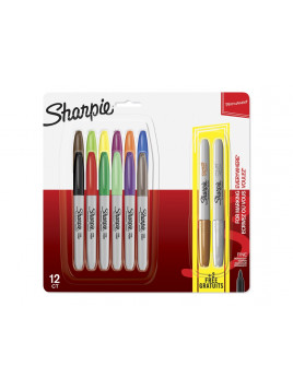 Rotuladores sharpie permanente punta fina blister de 12 unidades colores surtidos + 2 unidades color