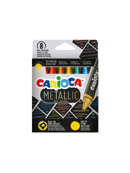 Lapices cera carioca metallic triangular caja de 8 unidades colores surtidos