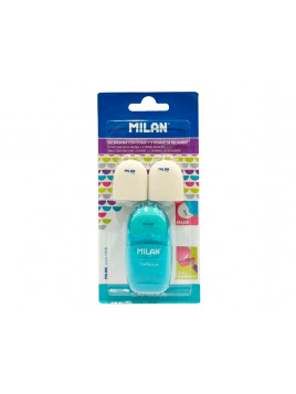 Sacapuntas milan compact touch duo plastico 2 usos con goma + 2 recambios de goma en blister