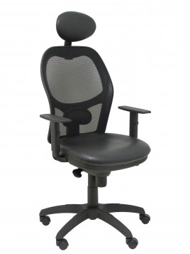 Silla Jorquera malla negra asiento similpiel negro con cabecero fijo