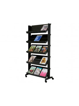 Expositor paperflow de suelo movil metalico con 5 repisas negro 140x1700x395 mm