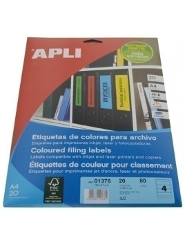 ETIQUETAS ADH.IMPR.APLI A4 para ARCHIVO C.ROMOS BLISTER 20h COL.AMARILLO 190x61 mm 80 uds.(01374)