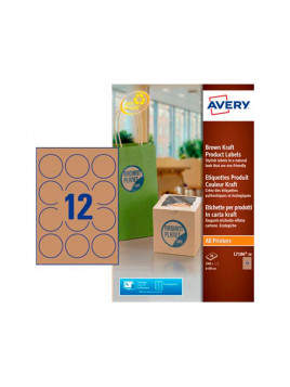 Etiqueta adhesiva avery kraft efecto carton redonda 60 mm removible para laser ink-jet